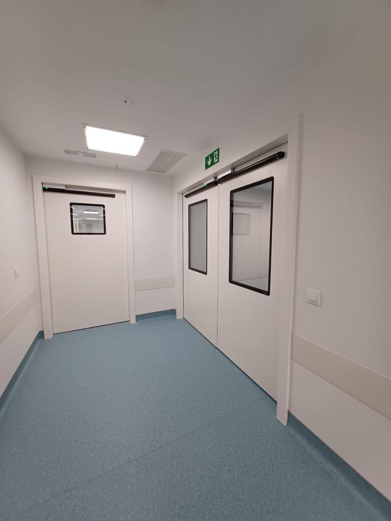 Asegura cierre estanco y apertura manos libres para quirófanos, laboratorios y salas limpias: mantiene presión diferencial, reduce infiltraciones y partículas, baja ruido y evita corrientes que arrastran contaminantes.